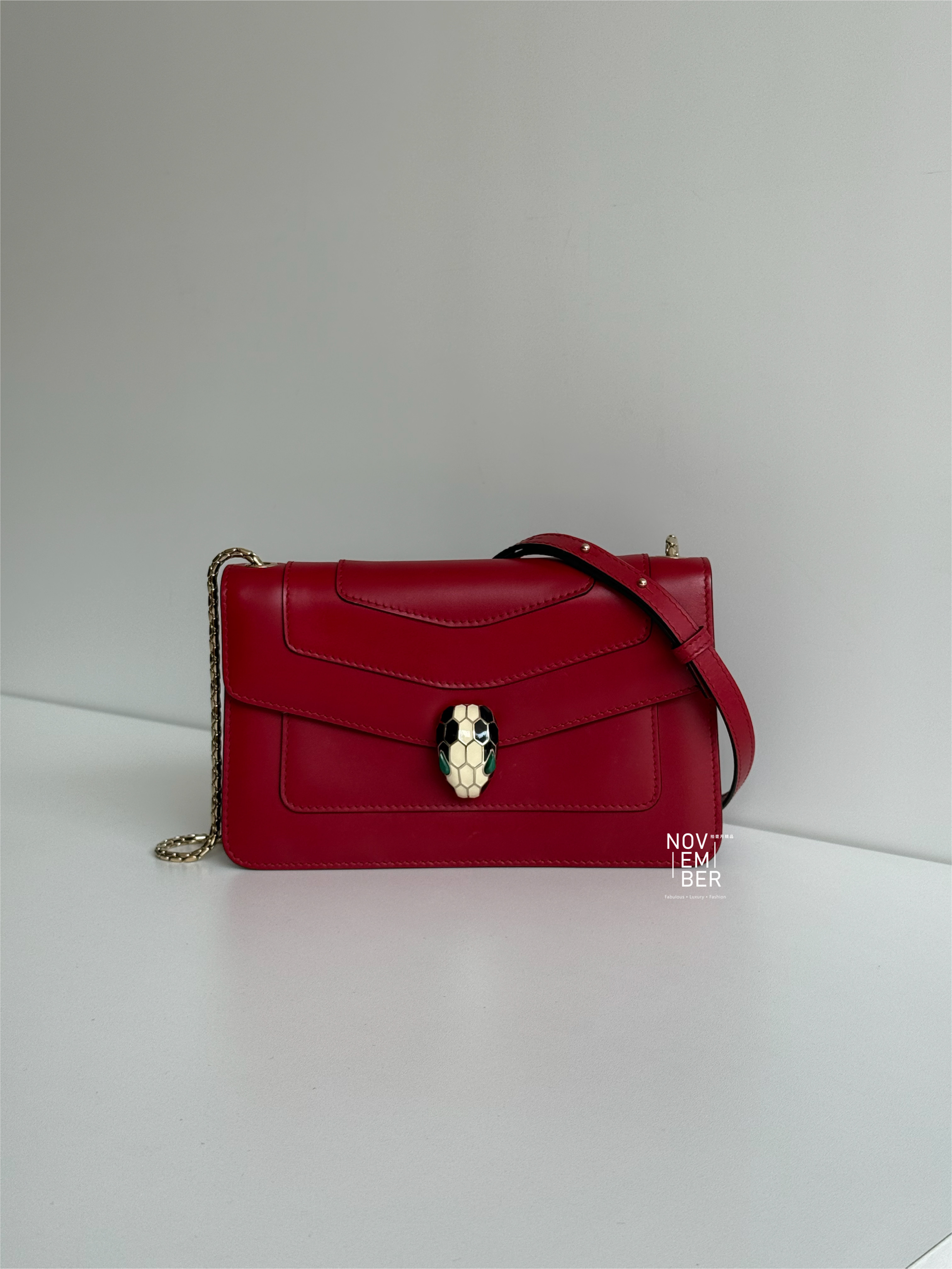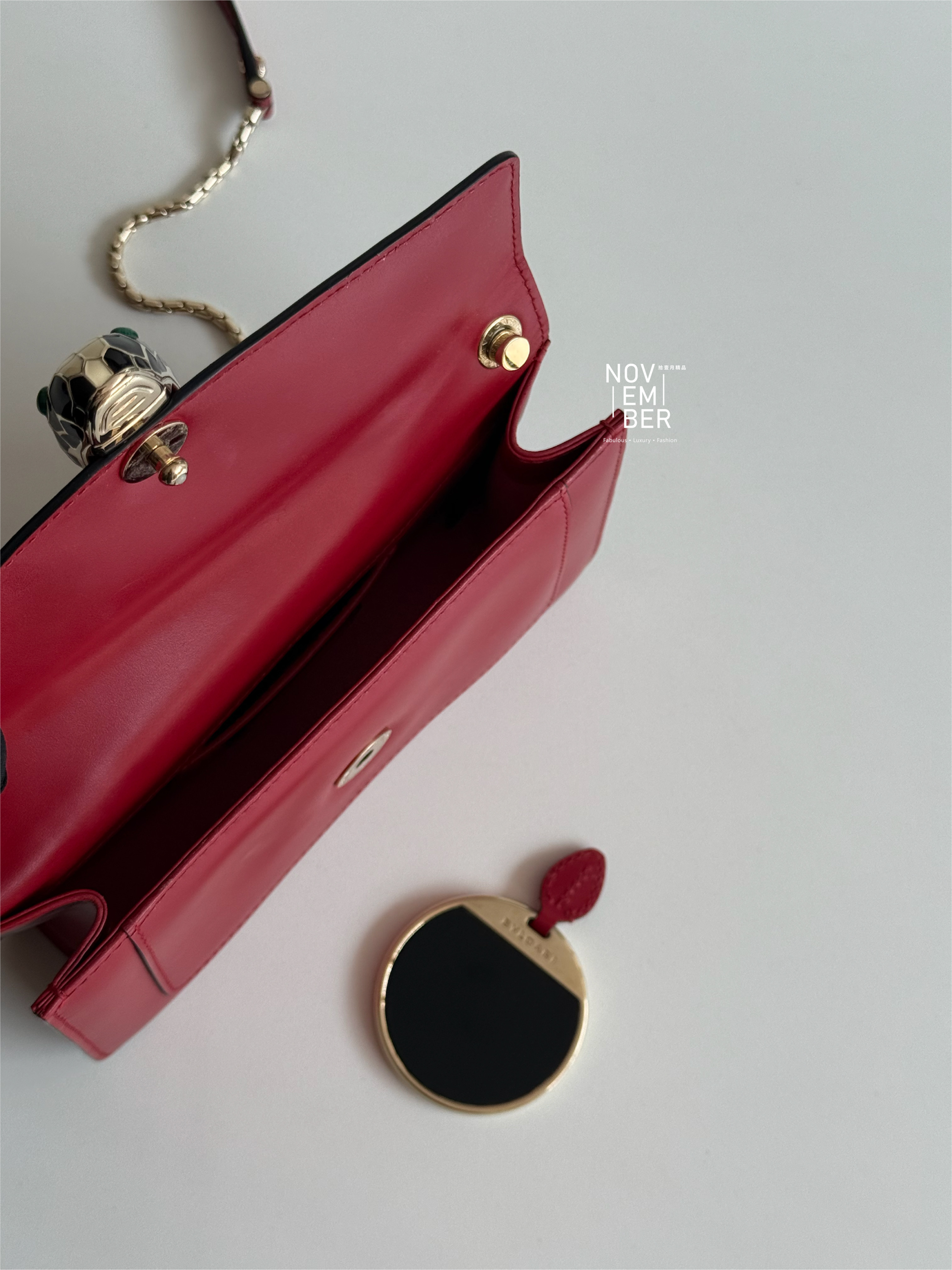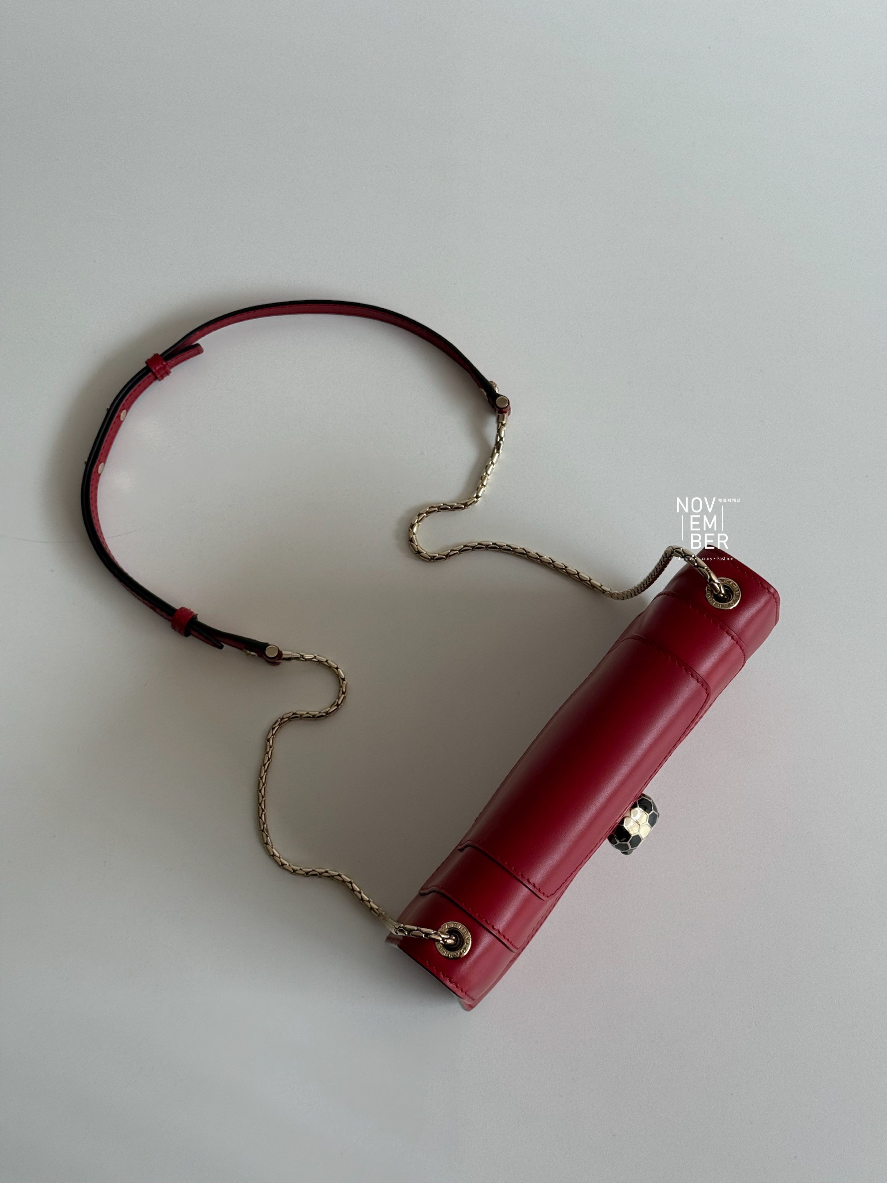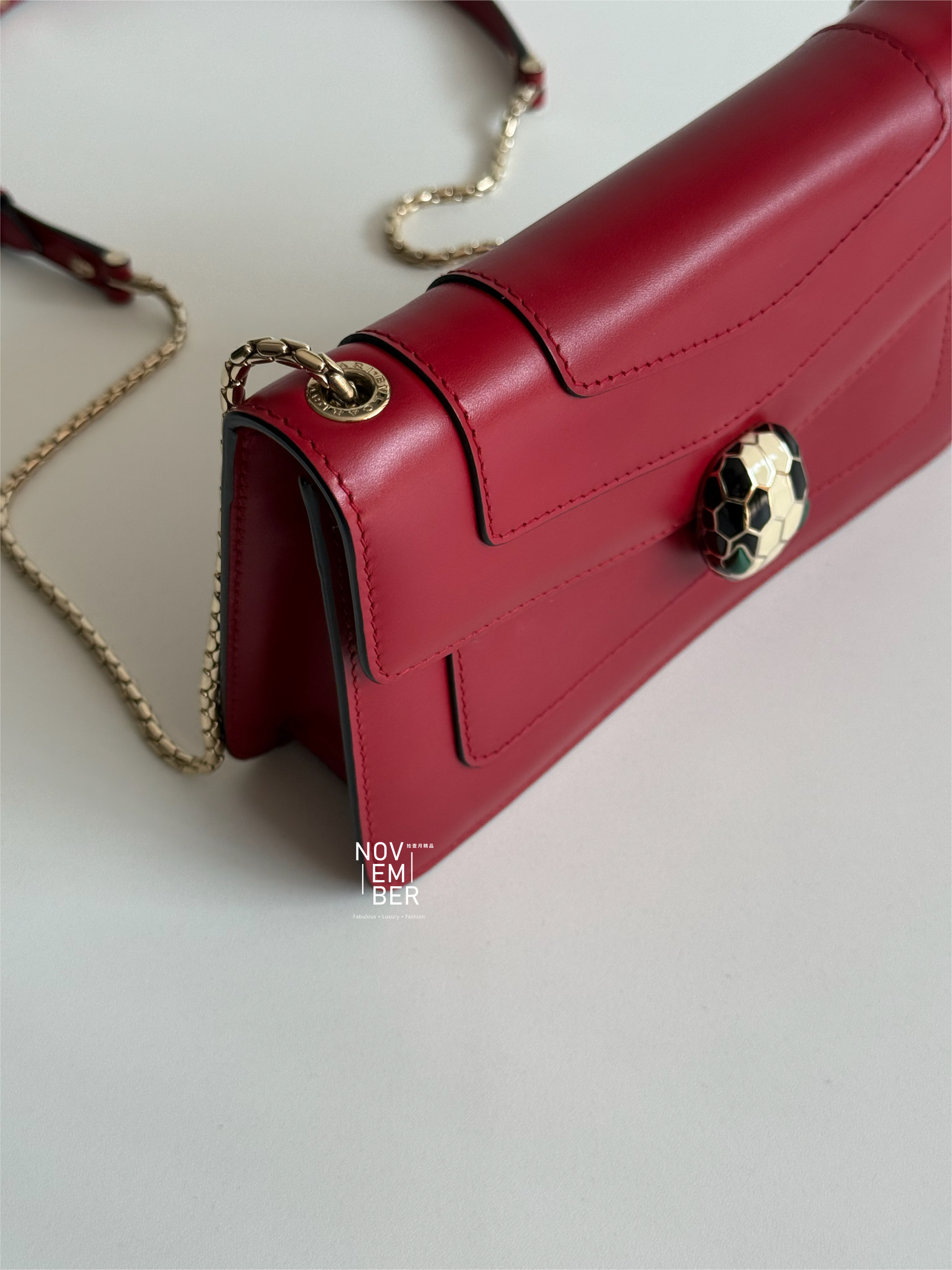 Serpenti 系列的標誌性蛇頭扣環,以精緻琺瑯與金屬細節點綴💫