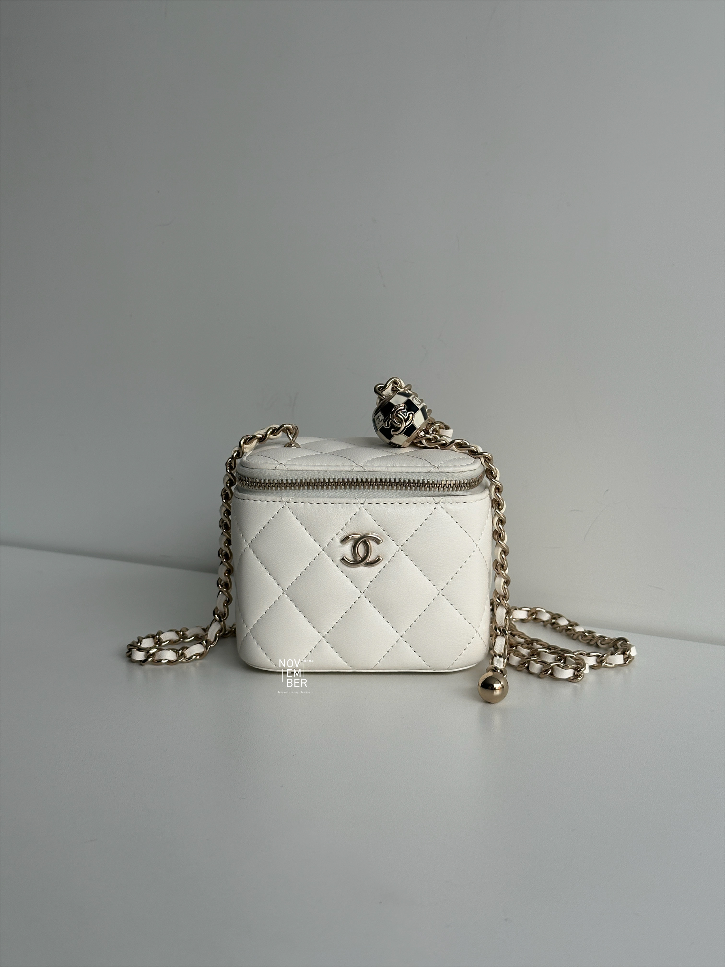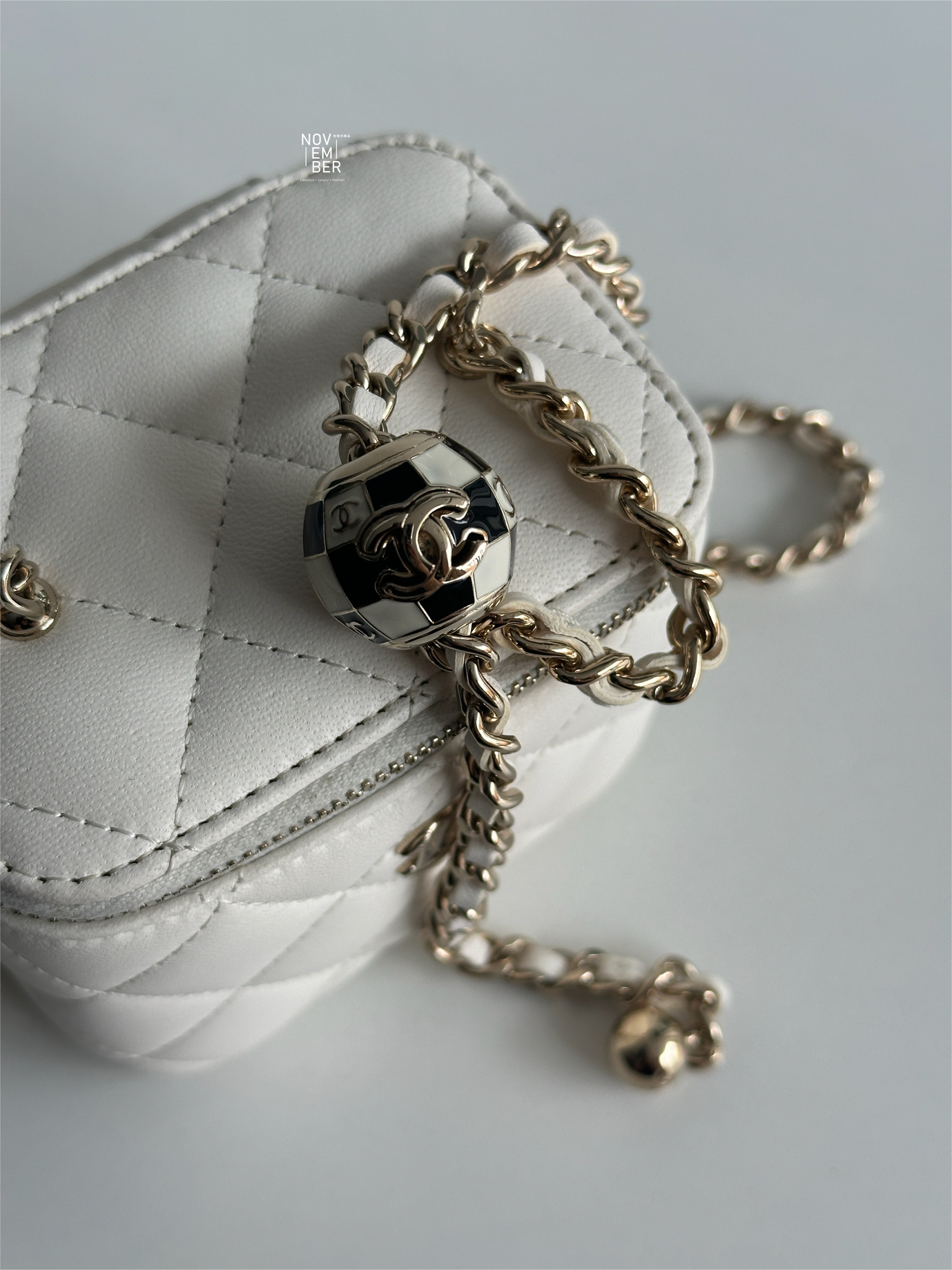 搭配經典菱格與白色皮革